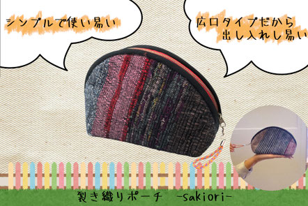 ランダムな裂き織り独特の素材感を活かしたポーチ